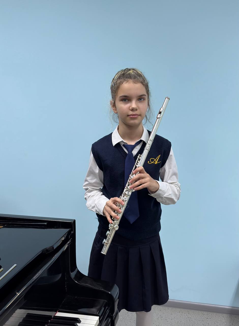 Юна флейтистка, учениця оркестрового відділення Київської дитячої школи мистецтв № 8 Баєва Аліса (викладач Людмила Гуляй, концертмейстер Олександра Приходько) взяла участь та здобула звання лауреата ІІ премії на II Всеукраїнському інструментальному конкурсі «Музична легенда – 2025».