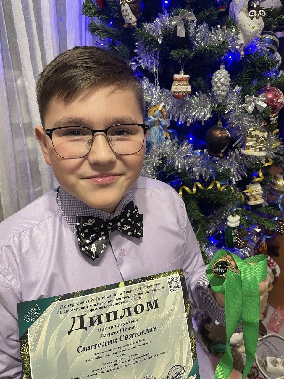 Щиро вітаємо учня Київської дитячої музичної школи № 22 Святелика Святослава — Лауреата І премії Міжнародного багатожанрового дистанційного фестивалю-конкурсу мистецтв “Golden legacy arts” з високою нагородою!