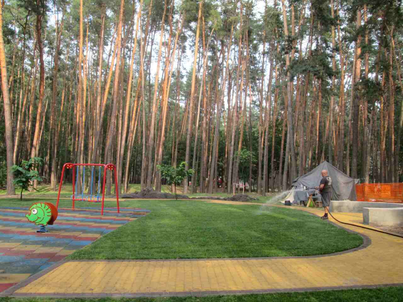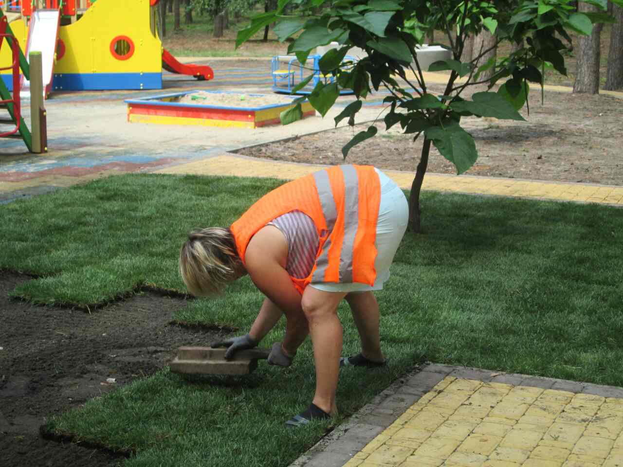 У рамках капітального ремонту у парку «Совки», біля дитячого майданчика, розпочато роботи з улаштування рулонного газону.