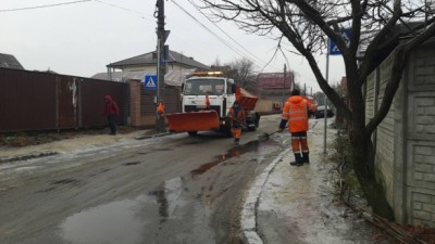 Триває в місті і постійна обробка тротуарів, пішохідних переходів, зупинок громадського транспорту.