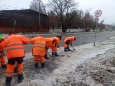 Триває обробка доріг і тротуарів протиожеледними засобами. Уночі працювало 337 одиниць спецтехніки і 35 бригад з ручного прибирання (212 працівників). Про це інформує КК «Київавтодор»