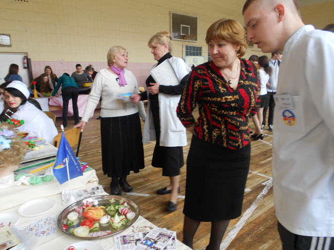 Профконсультант Роман Горбач (учень групи №311, кухар-кондитер) розповів школярам про особливості своєї професії, сферу послуг харчування та запросив на День відкритих дверей училища, який відбудеться 22 квітня 2016 року.