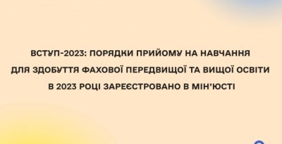 28 березня 2023 року у Міністерстві юстиції України зареєстровано Порядки прийому на навчання для здобуття фахової передвищої та вищої освіти: