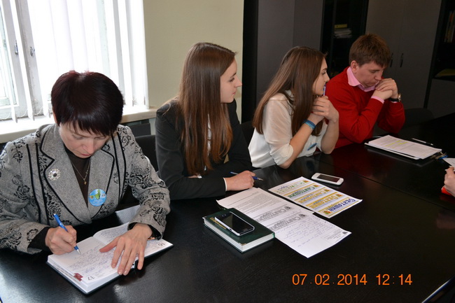 Також, не варто забувати, що саме сьогодні в Святошинській райдержадміністрації проходить День учнівського самоврядування. В цей день «посадовцями» нашої адміністрації стали представники районної асоціації «Старшокласник».Тому до обговорення проектів долучилися і лідери-старшокласники, а саме: Томчук Вікторія – голова асоціації «Старшокласник», «виконуюча обов’язки» голови району і Вікторія Павленко – «начальник» відділу з питань внутрішньої політики та зв’язків з громадськістю. А, власне, допомагала Валентину Буцьку презентувати проекти «заступник керівника апарату» - Анастасія Пакулко.