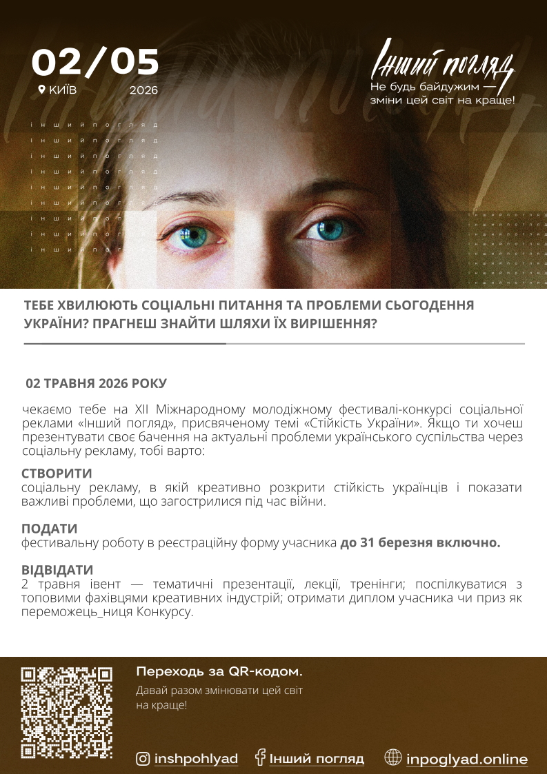 2 травня 2026 року в Києві відбудеться XII Міжнародний молодіжний фестиваль соціальної реклами «Інший погляд».