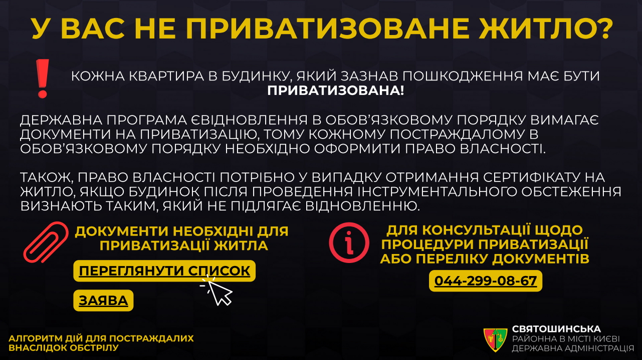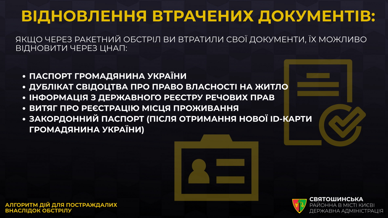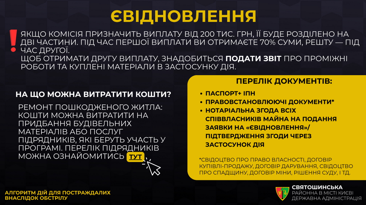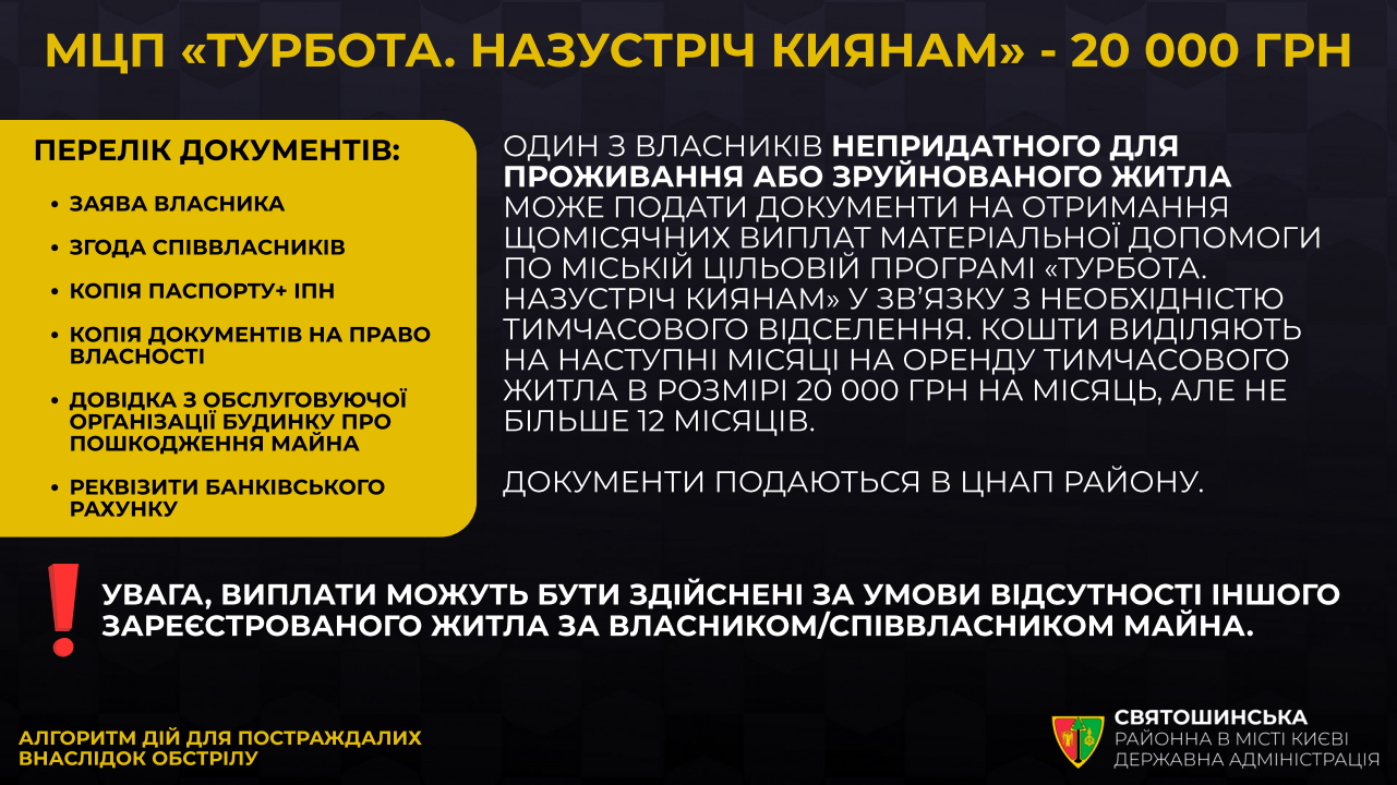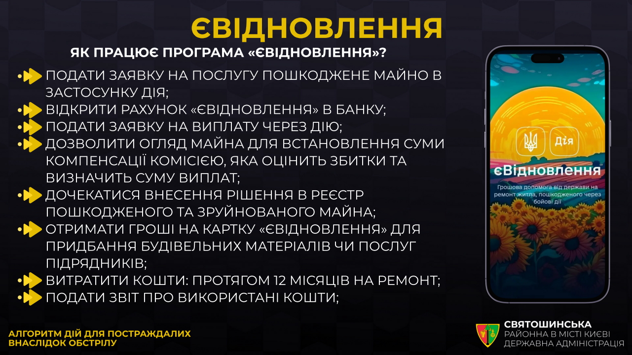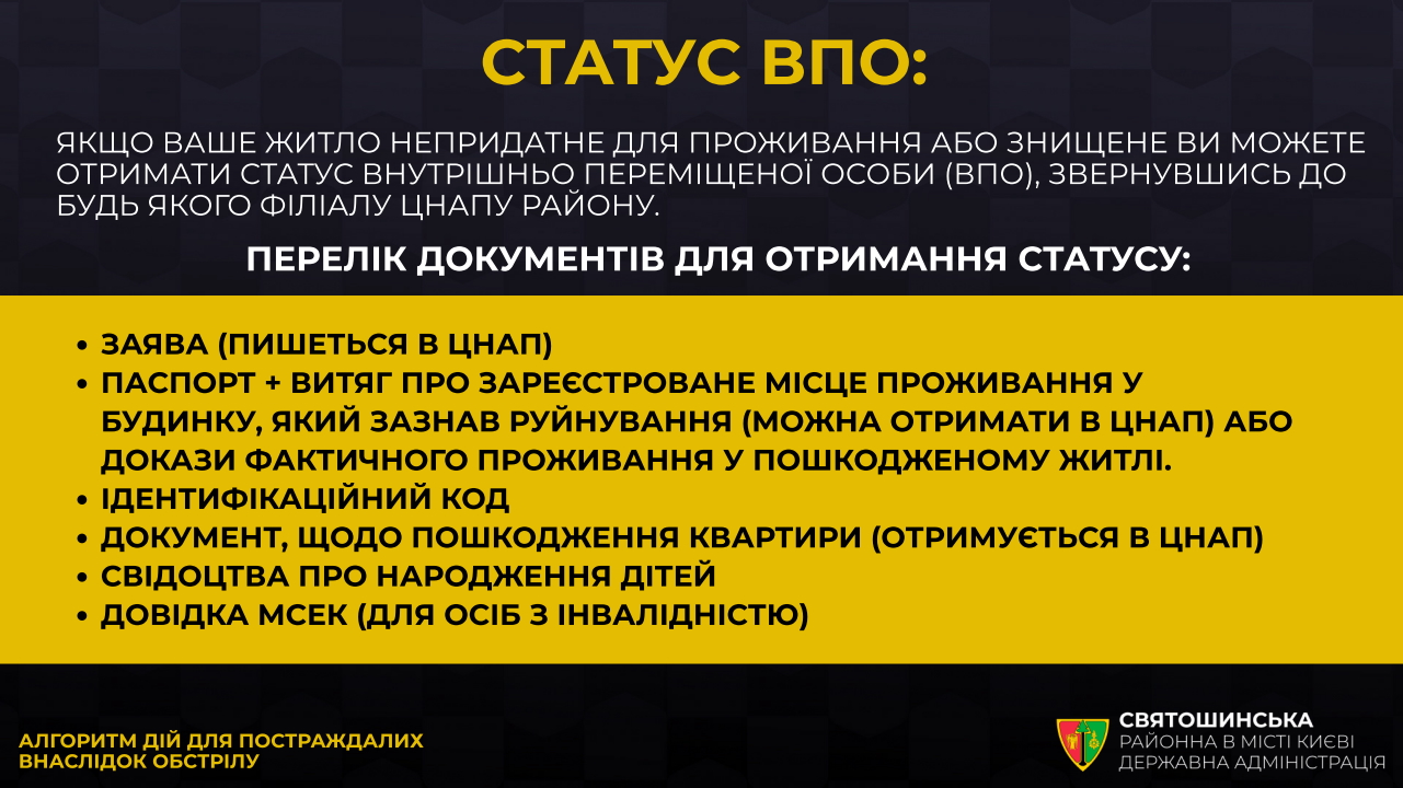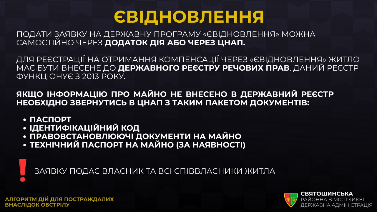 Святошинська районна в місті Києві державна адміністрація підготувала алгоритм дій для постраждалих мешканців Святошинського району.