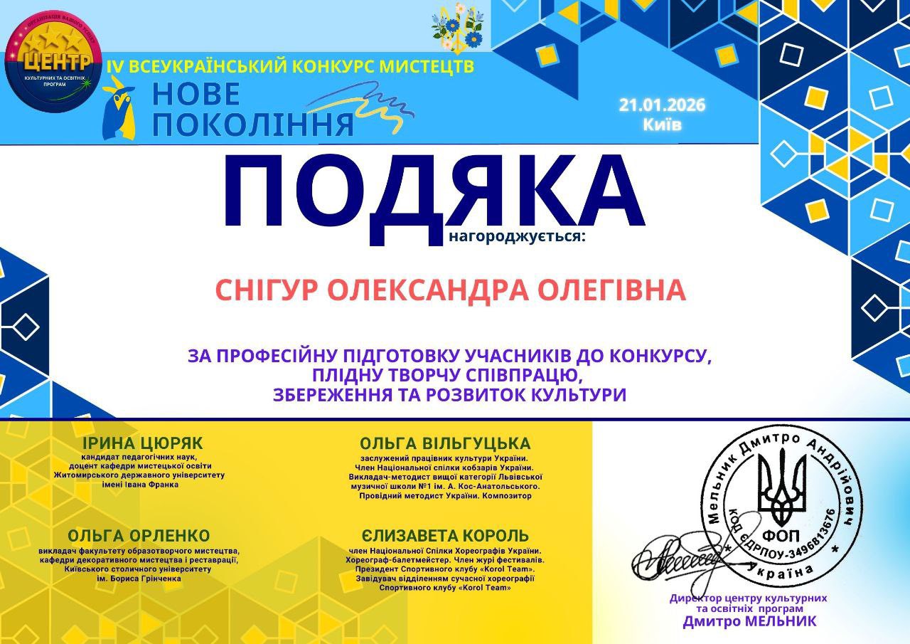 Щира подяка викладачці Олександрі Снігур за професійний супровід, підтримку та натхнення, які допомагають юному музиканту розкривати свій потенціал і досягати таких високих результатів.