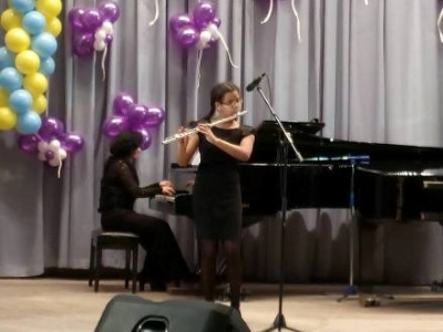 Відділ духових інструментів представила учениця-флейтистка Ігве Мєлісса (викладач Лариса Ігве, концертмейстер Гюльнара Караєва), у виконанні якої прозвучав твір Валерія Сапарова «Alla Tango».