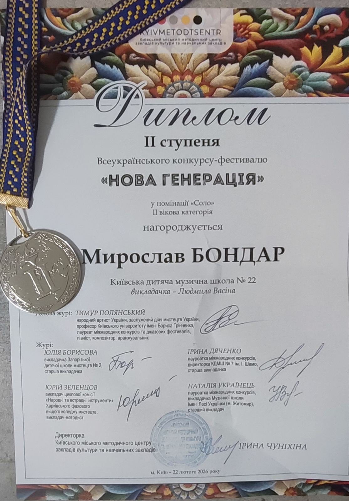 Учень КДМШ № 22 Бондар Мирослав (викладачка Людмила Васіна) взяв участь у Гала-концерті Всеукраїнського конкурсу-фестивалю «Нова генерація», який став справжнім святом сучасного музичного мистецтва.