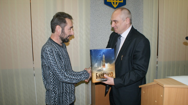 Юрій Бондар вручив керівнику Клубу любителів фантастики «Лоцман фантастики» Юрію Шевелі колекційне видання «Байконур» (фото)