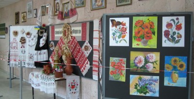 На стендах красуються барвисті вишивки: рушники, серветки, доріжки, картини, ікони вишиті гладдю, хрестиком, болгарським хрестиком, стрічками, бісером. Усі кольори веселки витанцьовують на вишивках, захоплюючи та радуючи очі всіх, хто має нагоду їх побачити.