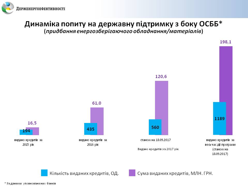 За неповний 2017 рік ОСББ залучили вдвічі більше коштів на енергоефективність за програмою «теплих кредитів» ніж за весь 2016 рік