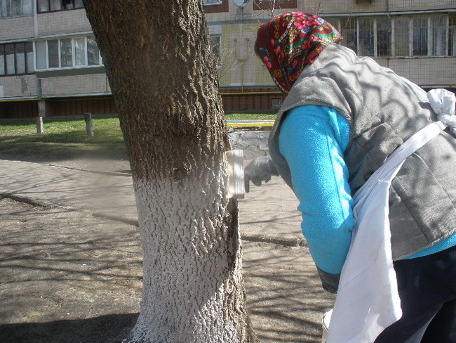 Уже багато років весняна побілка дерев стала традиційним заходом у березні – квітні місяці. Красиво пофарбовані дерева, як би проголошують про закінчення зими. Хоча справа тут не тільки в красі, щорічна весняна побілка, не тільки робить наші дерева привабливим, а головне захищає кору дерев від різних шкідливих комах.