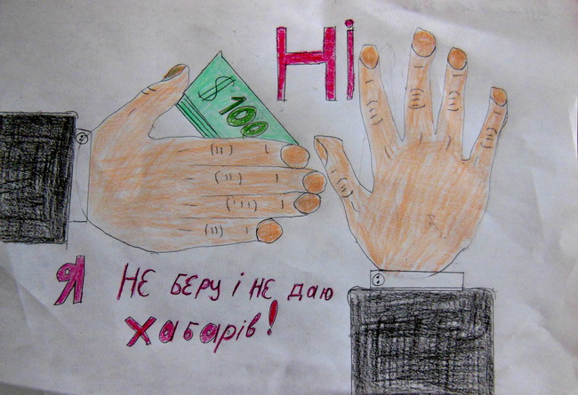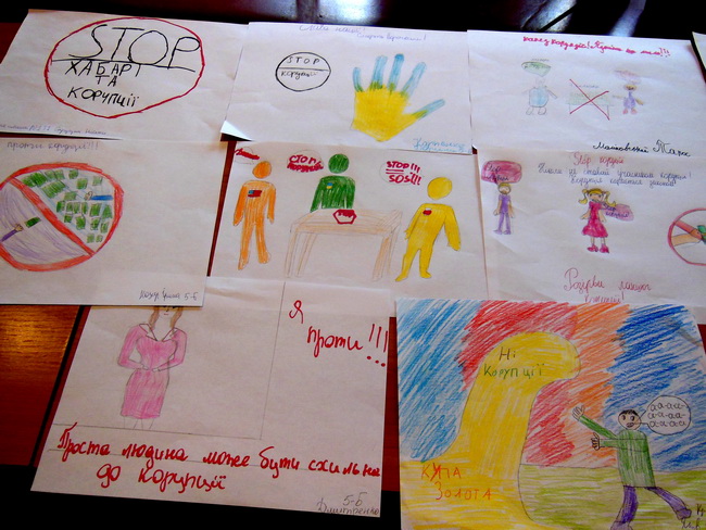 9 грудня у багатьох країнах світу проходять демонстрації, зустрічі, конференції, семінари та інші заходи, приурочені до Міжнародного дня боротьби з корупцією. Тому у спеціалізованій школі №131 протягом тижня з 7 по 12 грудня на виховних годинах були проведені бесіди «Боротьба з корупцією – справа кожного», диспути, круглі столи на тему: «Корупція: суть, причини, наслідки». В ході бесід були обговорені види корупції: хабарництво, шахрайство, вимагання, кумівство. Учні намагалися сформулювати свої поняття і визначення, що таке корупція. Своє розуміння і ставлення до нагальної проблеми діти відобразили на малюнках. Під час проведення бесід та дискусій вчителі і учні сформулювали поради щодо запобігання корупції. Наприклад, учні 5-Б і класний керівник Говоруха Н.В. створили серію соціальних малюнків і гасел: «Розбудовуй нову Україну!», «Живи чесно!», «Протидій корупції!», «Розірви ланцюг корупції!», «Справедливість починається з малого!», «Ми проти корупції!», «Чесність, порядність!».
