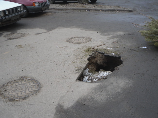 З метою безпечної життєдіяльності населення, працівниками відділу з питань охорони праці рекомендовано керівнику КП «РЕО-5» терміново організовувати встановлення огородження білля провалля асфальту та привести територію до належного стану, зокрема вирішити питання відновлення асфальтового покриття.