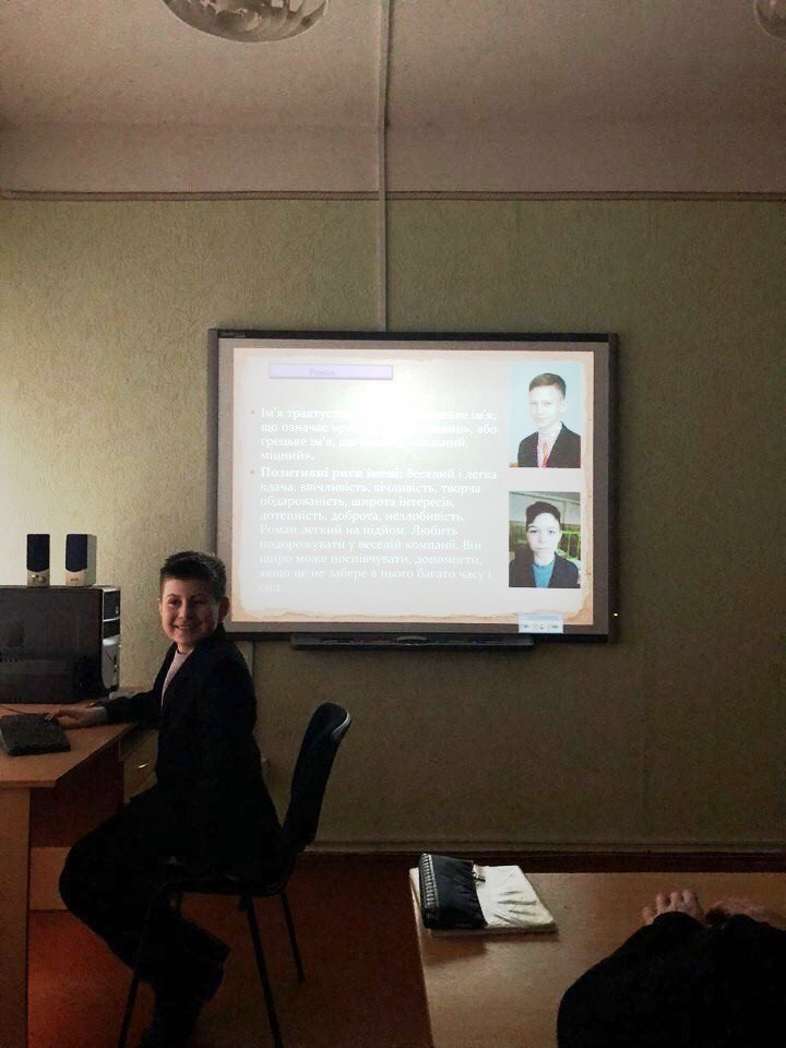 Учитель Павлова С.В. та учні 8-А класу провели урок-дослідження «Имя в реке времени. Происхождение и значение личных имён». Діти познайомились з лексичним значенням та походженням власних імен та прізвищ, навчились користуватись довідковою літературою, обирати матеріал та виступати перед аудиторією. Найкращі дослідження власних імен та прізвищ зробили Мартиненко О., Петренко М., Святненко В., Стась В. та Швидак В.