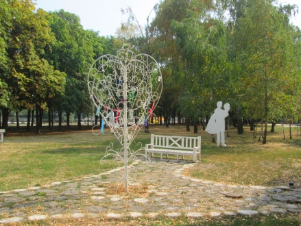 Серед інших парк вирізняється оригінальної композицією під названою «Молодята». Ця об’ємно просторова композиція була створена у 2014 році працівниками КП УЗН Святошинського району і з того часу привертає до себе увагу всіх відвідувачів парку, а особливо молодят, які, як прояв свого кохання, на «весільному дереві» залишають «замочки кохання».