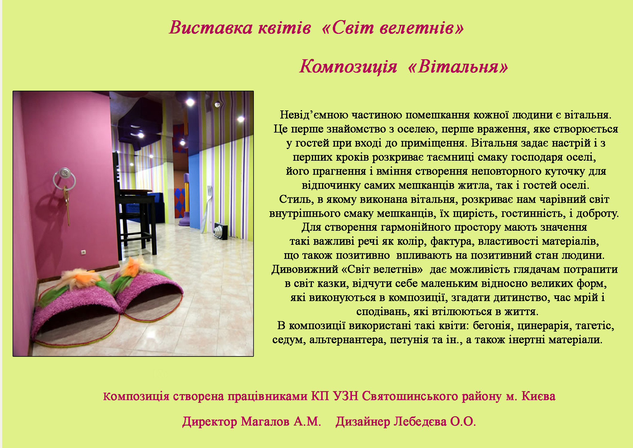 Сьогодні, 15 червня, на Співочому полі Печерського ландшафтного парку стартує виставка квітів «Світ велетнів». Фахівці КП УЗН Святошинського району створили композицію «Вітальня». Завітайте на квіткову виставку, пориньте у дивовижний світ Велетнів, насолодіться квітковою казкою!