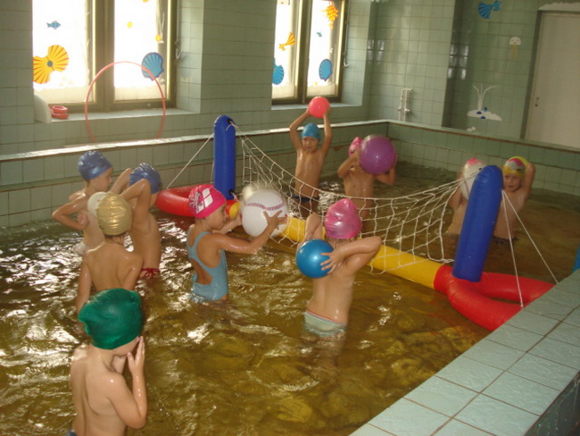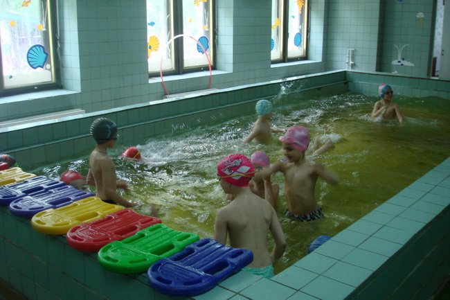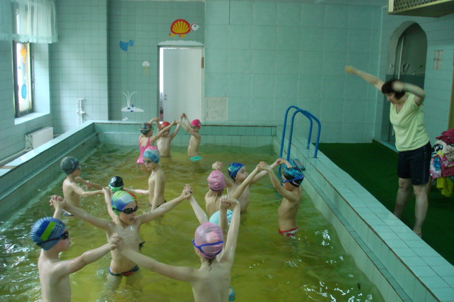 Діти з великим задоволенням, починаючи з молодшої групи двічі на тиждень, відвідують заняття в басейні, які мають оздоровчу спрямованість (діти займаються оздоровчим плаванням, аквааеробікою). У свою чергу педагоги акцентують увагу перш за все на індивідуальному підході до кожної дитини.