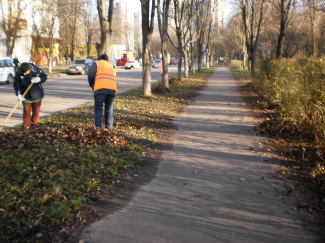 В сквері між вулицями Семашка та проспекту Палладіна, на вулицях Потапова, Якуба Коласа, Депутатській, Ірпінській та в парку «Інтернаціональний» на загальній площі 1,83 га, вигребли та вивезли 20 м3 опалого листя.