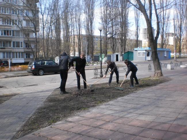 З вулиць Булаховського, Наумова, Булгакова, Корольова, Сім’ї Сосніних, проспектів Леся Курбаса та Корольова, скверів на вулицях Чорнобильській, Крамського, Львівській, Верховинній, Святошинській, Котельникова було вивезено понад 229 м3 листя та гілля, приведено в належний санітарний стан території загальною площею 7,85 га.