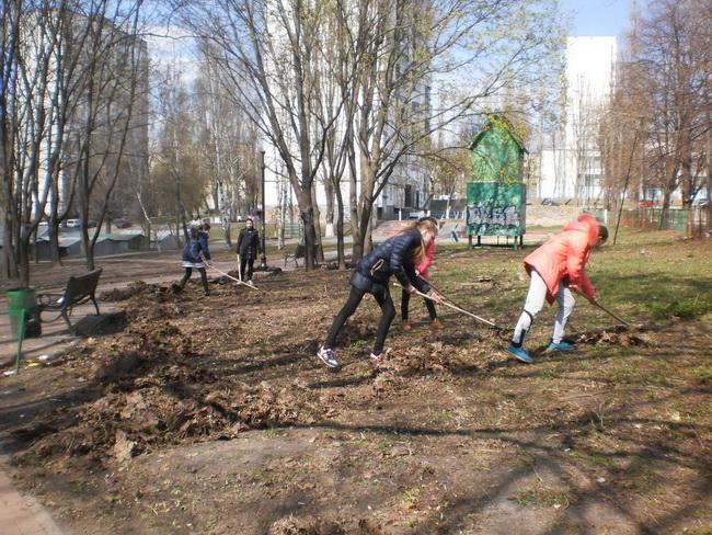 Зокрема, 2 квітня школярі Святошинського району вийшли на толоку та разом з працівниками КП УЗН прибирали в парках та скверах Святошина.