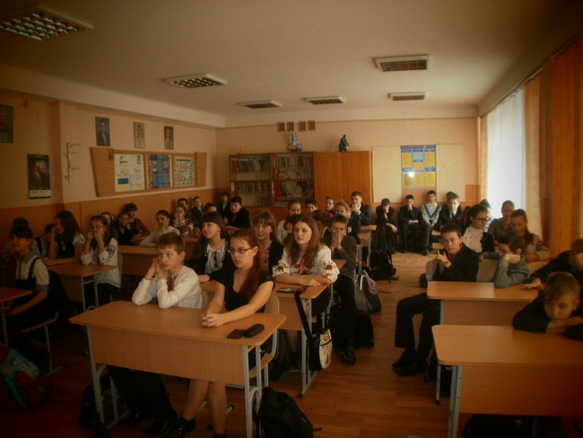Присутні дізнались, що протягом короткого життя Василь Симоненко написав поезiï, провiдною темою яких є любов до рiдноï землi, вiдповiдальнiсть за ïï долю. Поет писав новели, пробував створити кiносценарiй зi студентського життя, став автором численних статей, театральних i лiтературних рецензiй, створив три казки для дiтей i дорослих: «Цар Плаксiй i Лоскотон», «Подорож в краïну Навпаки», «Казка про Дурила». Деякі з поезій В.Симоненка, учні обрали для голосного читання. У виконанні Старкової Наталіі, Приходько Іллі, Петриченко Анни звучали поетичні твори: «Лебеді материнства», «Матері», «З дитинства», «Світ який – мереживо казкове», «Ти знаєш, що ти людина» та інші.