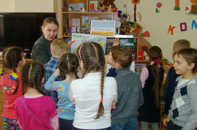 Бібліотекар І категорії Галина Василівна Чоні ознайомила маленьких користувачів бібліотеки з Червоною Книгою України, до якої занесені понад 33 види птахів. Разом з бібліотекарем діти дізнались про розмаїття пташиного світу: великих і малих пташок, вегетаріанців та м’ясоїдних та про тих, які населяють природні зони України, зокрема про лелеку.