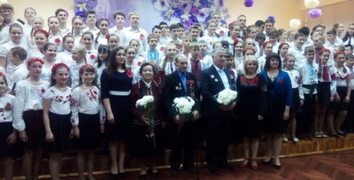 Урочистості розпочала виконувач обов’язків директора школи Нечипоренко Людмила Петрівна, яка привітала всіх присутніх зі святом і побажала, щоб День пам`яті та примирення передавався з покоління в покоління і надалі, і зберігав в наших серцях такі поняття, як Батьківщина, честь, обов`язок і пам`ять. У конкурсі пісні та строю взяли учні 9-11-х класів. Молодь продемонструвала присутнім виправку, спортивну підготовку та звучання стройової пісні. Почесне журі віддало перевагу випускникам школи, які посіли перше місце.
