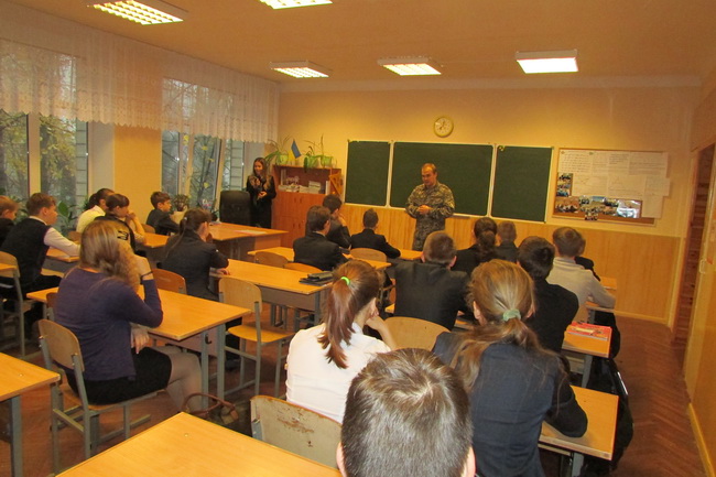 Зустріч з учасником бойових дій в зоні АТО Андрієм Кравченком відбулась в СШ №200 (фото)