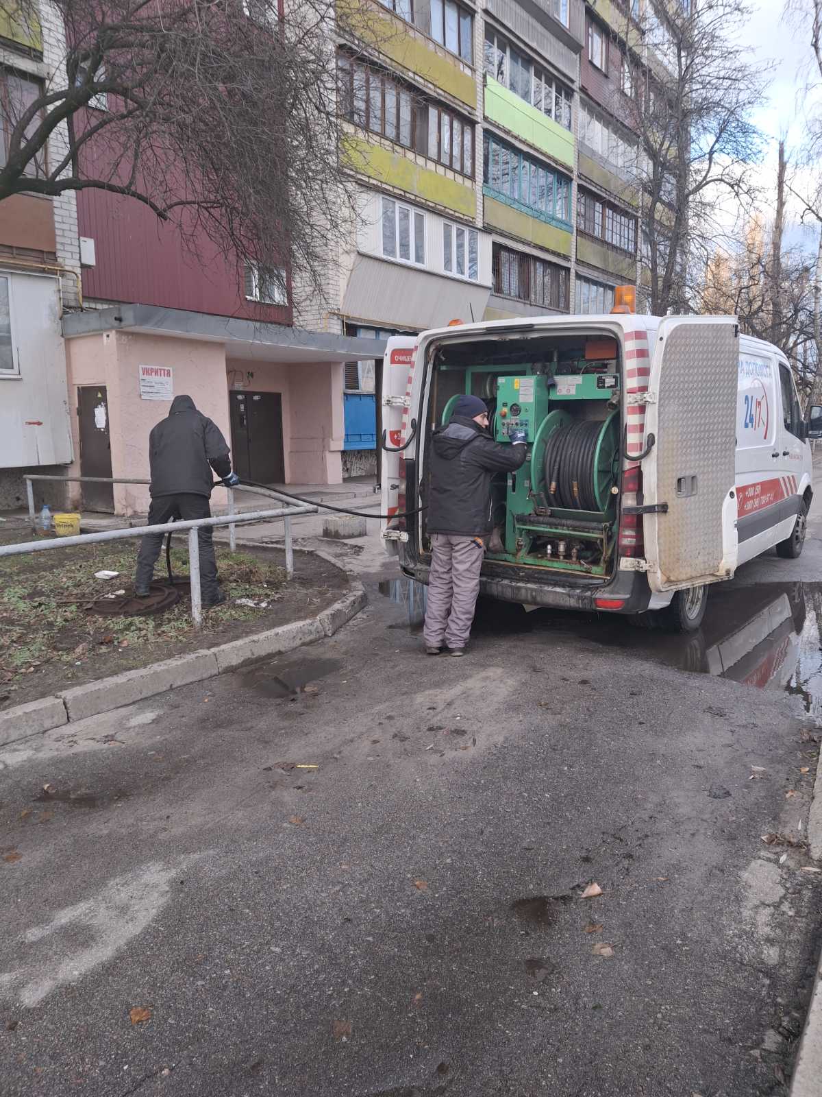з прочищення мережі водовідведення за адресами: вул. Симиренка, 2/19 (під. №3, 4);34 (під. №6); 14-А; 26; 5 (під. №10); вул. О. Махова, 6-В (під. №5); просп. Ак. Корольова, 12-Ж; 12-А (під. №6); вул. Г-Барського, 7 (під. №1); вул. Вахтанга Кікабідзе, 9; 4; 6-А; вул. Святошинська, 6 (під. №1); вул. Депутатська, 6 (під. №2); вул. Верховинна, 18 (під. №1); вул. В. Кучера, 2-А (під. №1); вул. В. Доманицького, 4 (під. №5); просп. Ак. Палладіна, 24 (під. №5); вул. Біличанська, 1;вул. О. Васкула, 8; вул. Мих. Котельникова, 87 (під. №2); вул. Ак. Доброхотова, 11 (під. №2); вул. Чорнобильська, 24/26; вул. Ак. Булаховського, 28; вул. Ірпінська, 70; вул. Клавдіївська, 34; вул. О. Мудрака, 23-А; вул. В. Верховинця, 10 (під. №3);вул. Г. Юри, 7-В; вул. Ак. Кіпріанова, 4 (під. №1); вул. Д. Чижевського, 3 (під. №3).