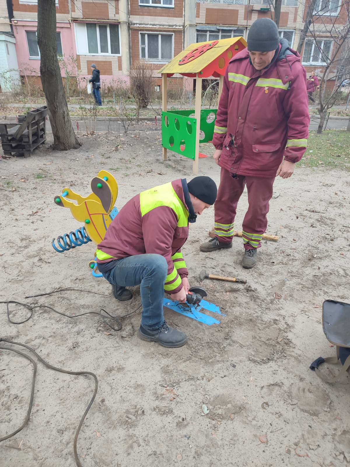 садові лави (ремонт): вул. О. Мудрака, 25; вул. Ак. Булаховського, 32;