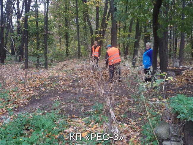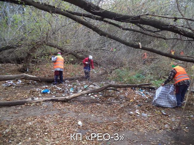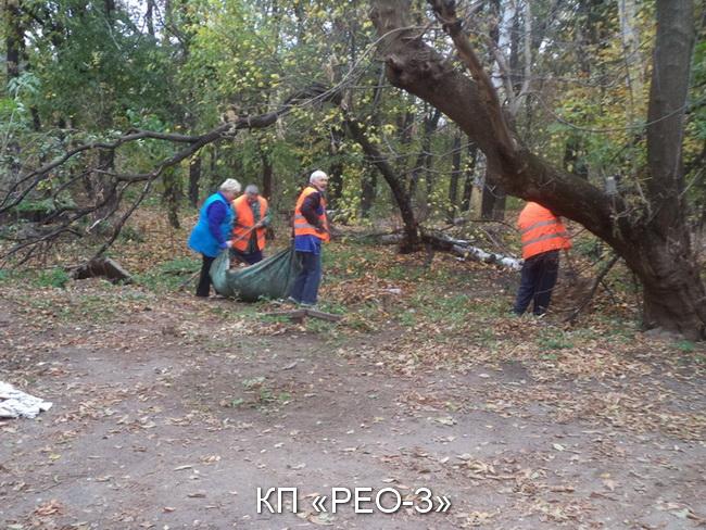 Сьогодні двірники КП «РЕО-3» прибрали не лише закріплені прибудинкові території, а й навели лад в лісосмузі на вулиці Сім’ї Сосніних поблизу залізничної станції «Борщагівська».